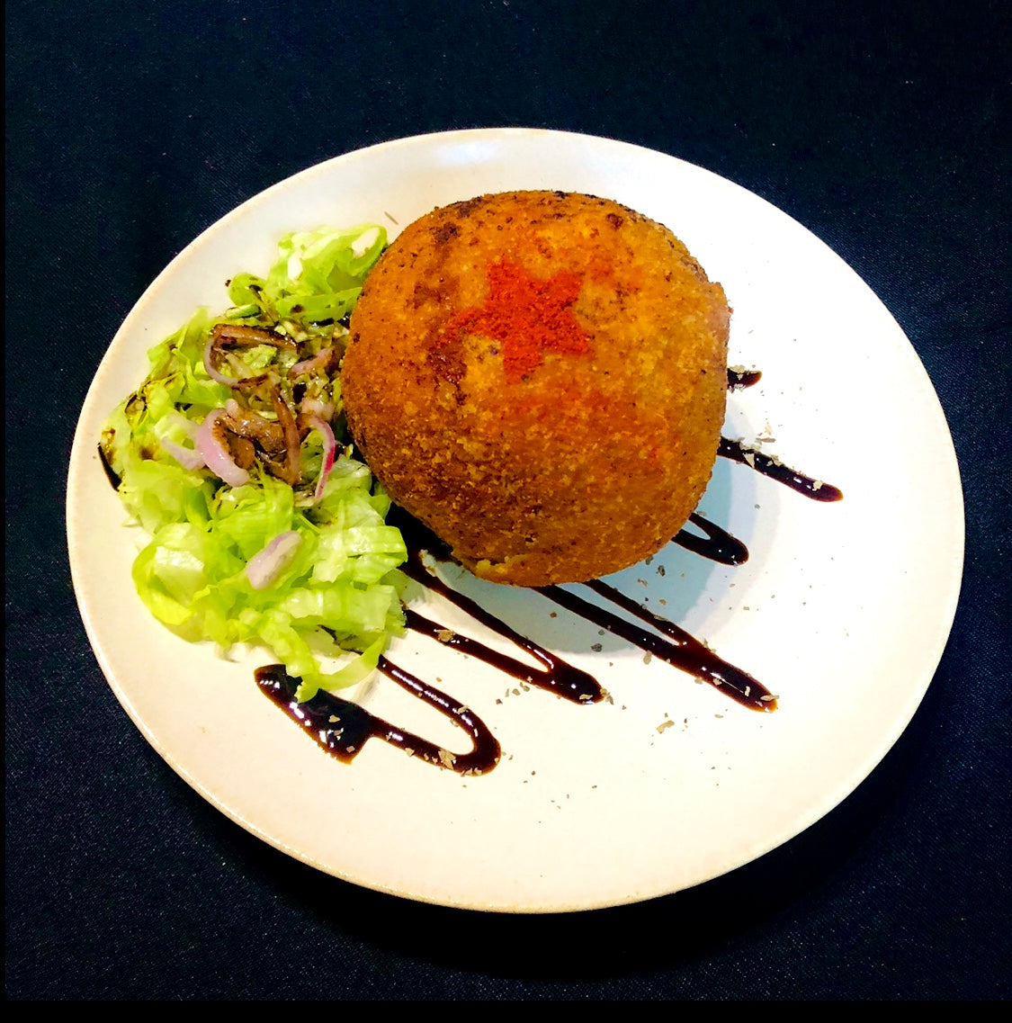 Un croustillant de pommes de terre frit fourré avec un généreux coeur à la raclette