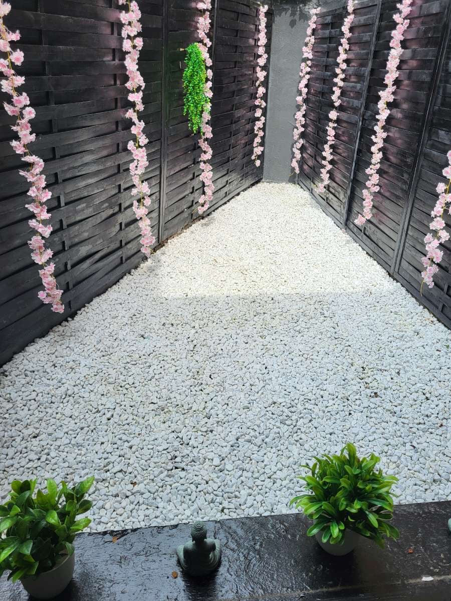 Une petite cour privée, idéale pour se détendre après une session de gaming, dans un cadre calme et agréable.