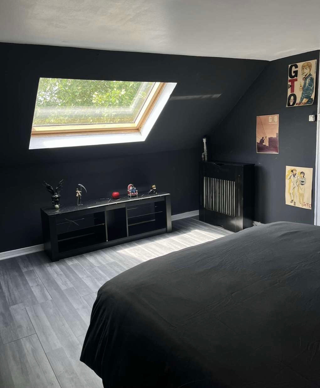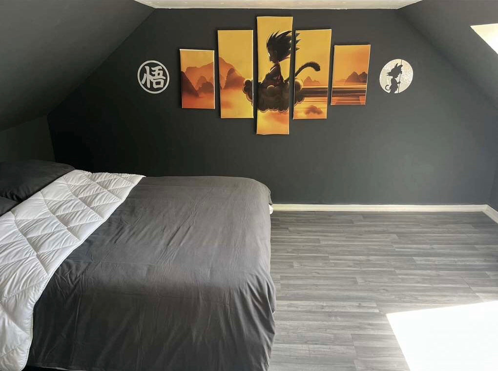 Une chambre décorée dans un style manga de 9m² tout confort avec un lit 2 places